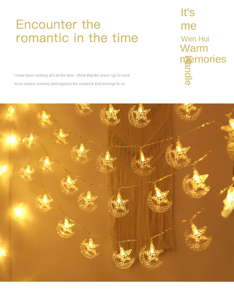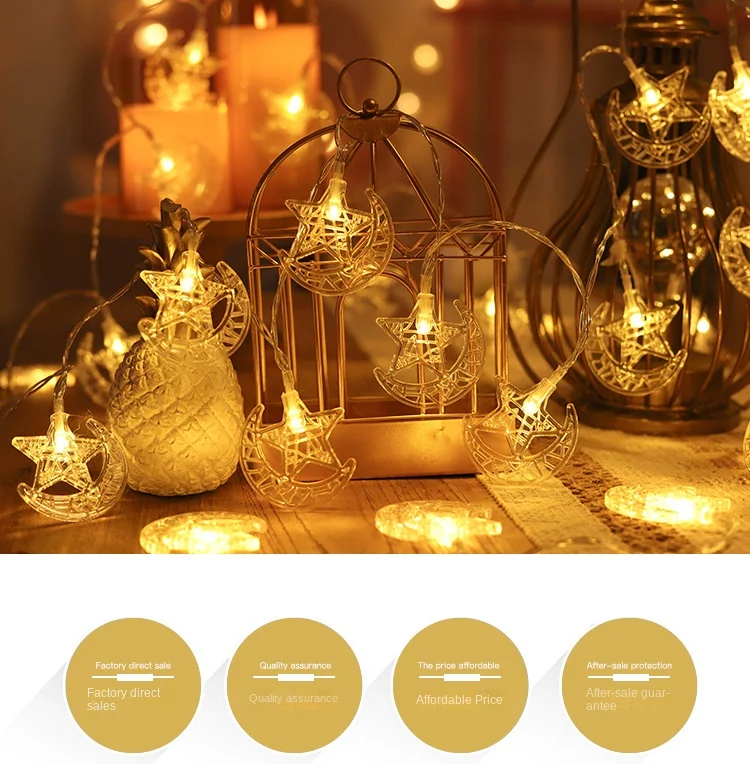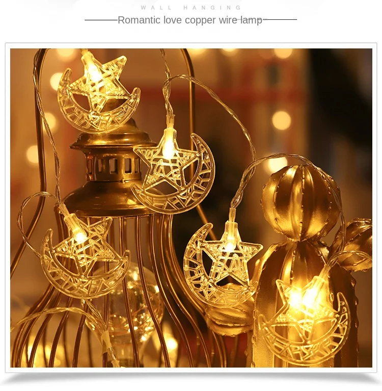 سلسلة إضاءة LED على شكل نجمة وقمر، بطول 1.5/3 متر، لعيد مبارك، لتزيين المنزل والمناسبات الإسلامية والاحتفالات والاحتفالات في رمضان كريم وعيد الأضحى المبارك.